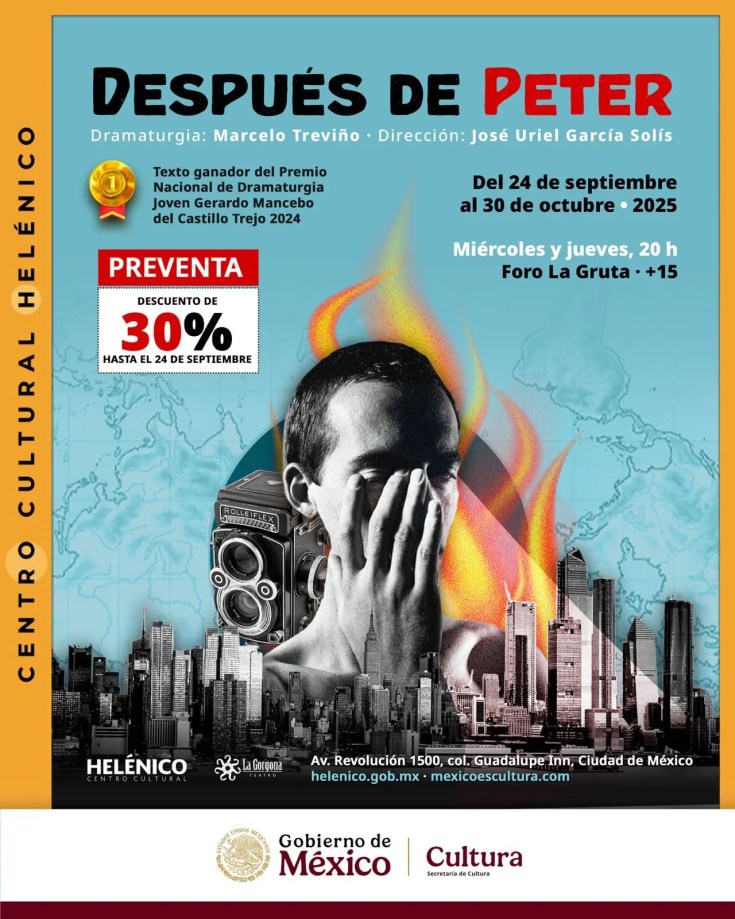 Después de Peter se presentará del 24 de septiembre al 30 de octubre de 2025, con funciones los miércoles y jueves a las 20:00 horas en el Foro La Gruta. El boleto tiene un costo de $155; actualmente hay una preventa del 30 por ciento de descuento válida hasta el 24 de septiembre. Las localidades pueden adquirirse en las taquillas del Centro Cultural Helénico, ubicado en avenida Revolución 1500, o en la página: helenico.gob.mx.